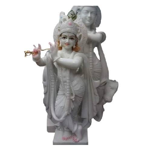 In a temple setting, the Radha Krishna statue becomes a focal point of worship, where devotees offer prayers, flowers, and light lamps to seek blessings for love, harmony, and peace in their lives. The pure white marble reflects purity, while the smooth finish and fine craftsmanship enhance the overall spiritual experience. The aura of the statue, with its divine symbolism, brings an atmosphere of sanctity and peace to the temple environment.